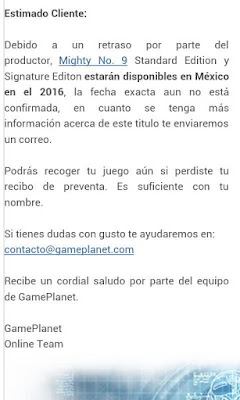DeleteYour update section is incorrect. The dates were reported as changed on 7/23 here: http://segmentnext.com/2015/07/23/mighty-no-9-release-date-rumors-shot-down-by-comcept-will-release-as-planned/ but GI didn't pick it up. The post over at VGStations is in regard to the changed release date on Amazon & co, not in regard to the Amazon preorder email.