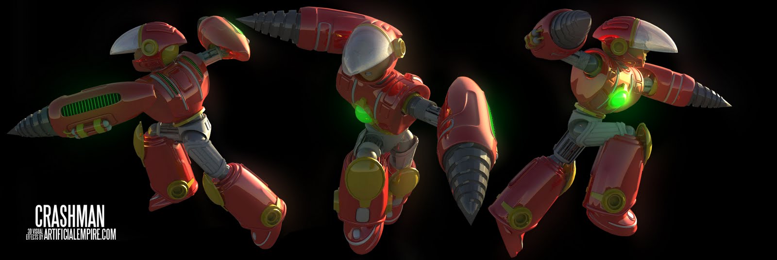 Last week we caught a peek at David Espinoza's exceedingly awesome Hollywood-quality renders of the Mega Man 2 cast. Today, Kotaku brings us a look at two more of equal quality: Crash Man and Quick Man.